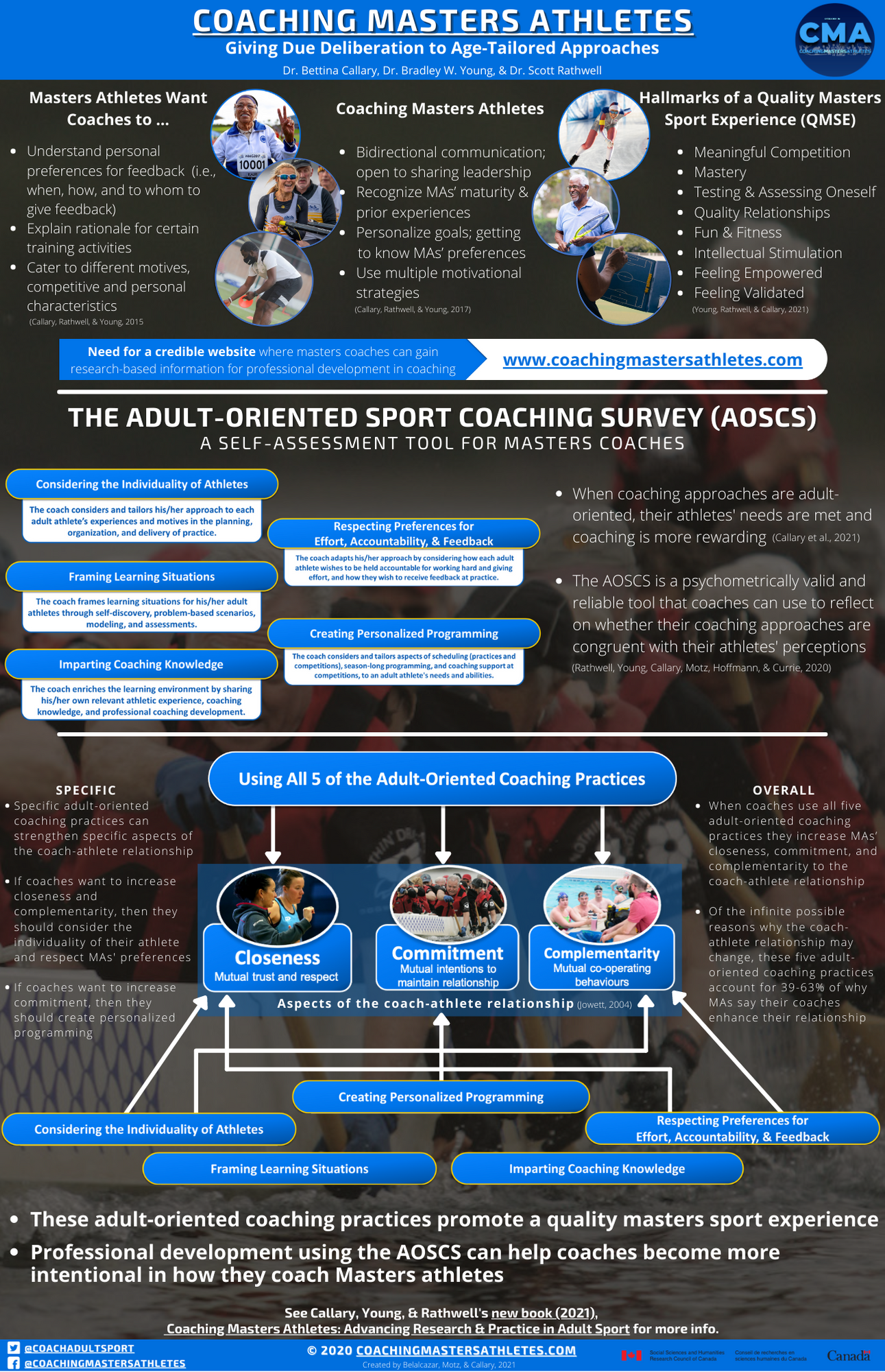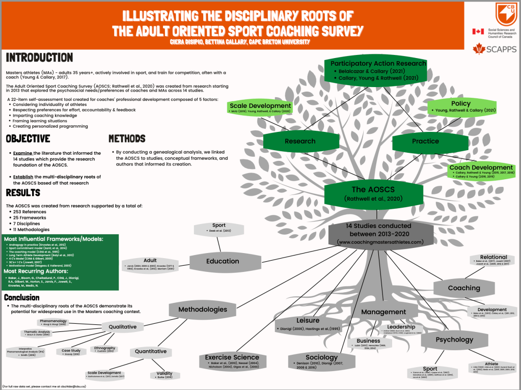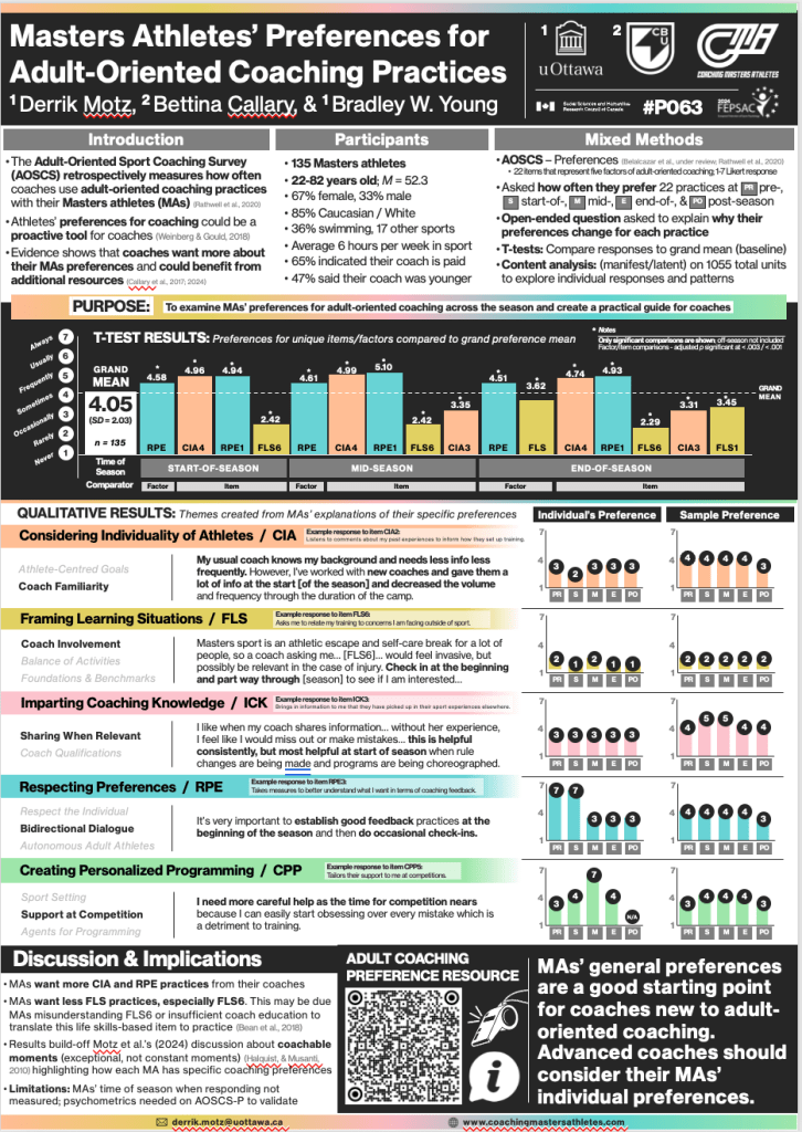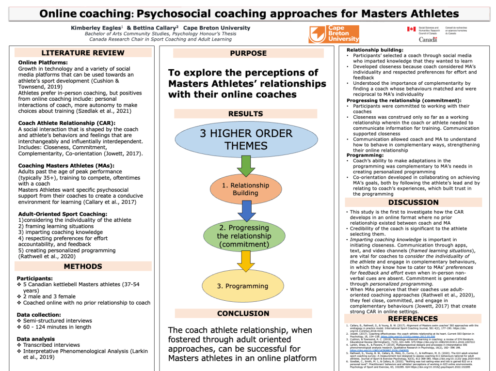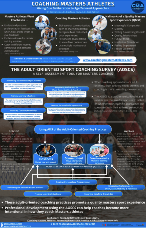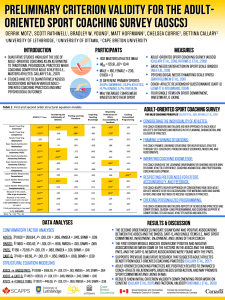 Motz, D., Rathwell, S., Young, B. W., Callary, B., Hoffman, M., & Currie (2019). Preliminary criterion validity for the adult-oriented sport coaching survey: Associations with key psychosocial variables. Journal of Exercise, Movement, and Sport (Psychomotor Learning Abstracts), 51, 93.