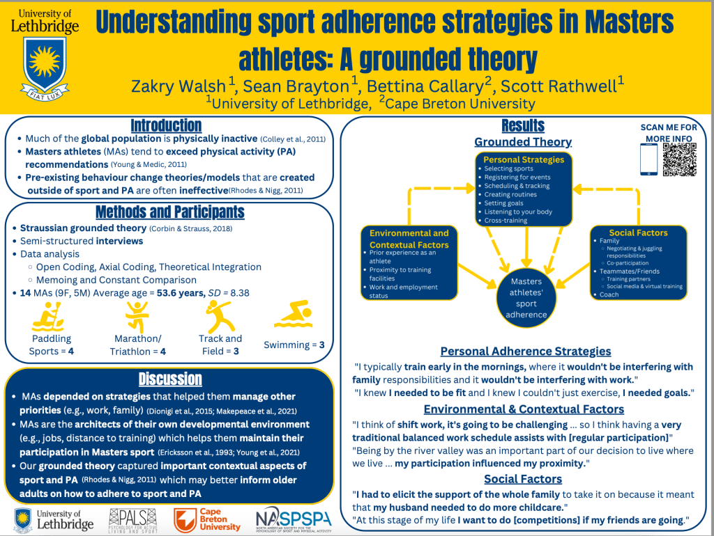 Motz, D., Rathwell, S., Pope, J. P., Callary, B. (2019). The relationship between athletic identity and motivation in masters athletes. Journal of Exercise, Movement, and Sport (Psychomotor Learning Abstracts), 51,134.
